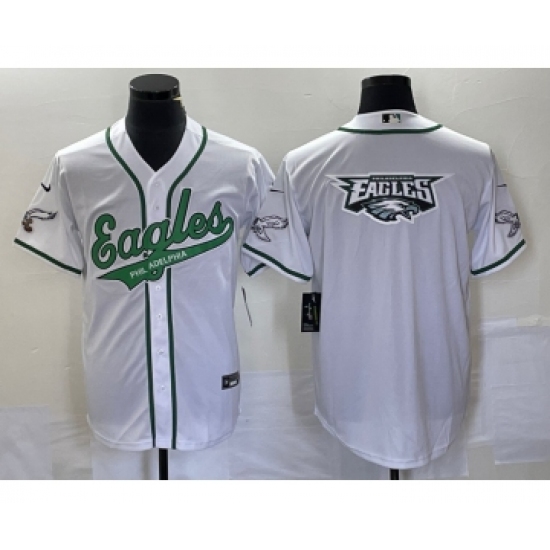 Men's Nike Philadelphia Eagles White Team Big Logo Cool Base Stitched Baseball Jersey