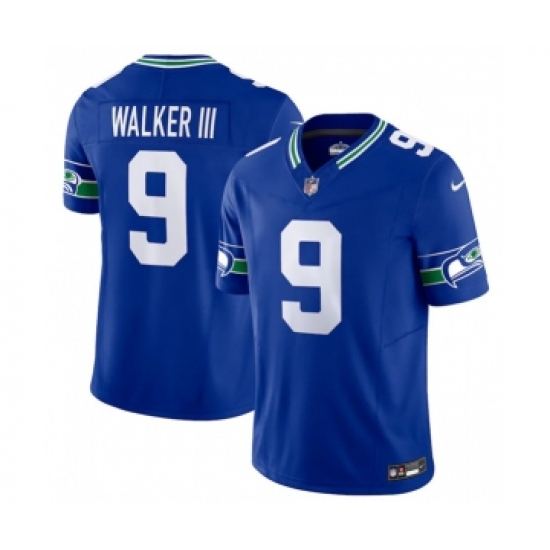 Men's Nike Seattle Seahawks #9 Kenneth Walker III Royal 2023 F.U.S.E. Vapor Limited Throwback Stitched Jersey