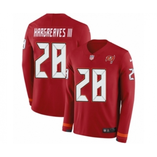 >Men's Nike Tampa Bay Buccaneers #28 Vernon Hargreaves III Limited Red Therma Long Sleeve NFL Jersey