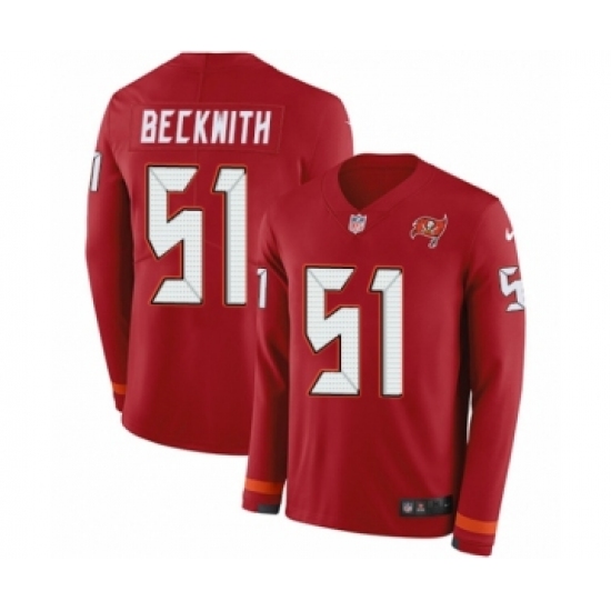>Men's Nike Tampa Bay Buccaneers #51 Kendell Beckwith Limited Red Therma Long Sleeve NFL Jersey