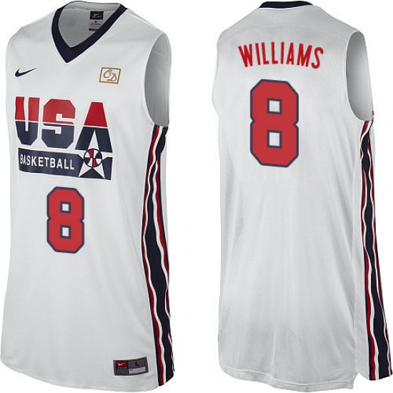 Men's Nike Team USA #8 Deron Williams Authentic White 2012 Olympic Retro Basketball Jersey
