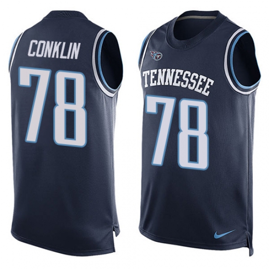 Home>NFL>Tennessee Titans>Jack Conklin>Men's Nike Tennessee Titans #78 Jack Conklin Limited Navy Blue Player Name & Number Tank Top NFL Jersey