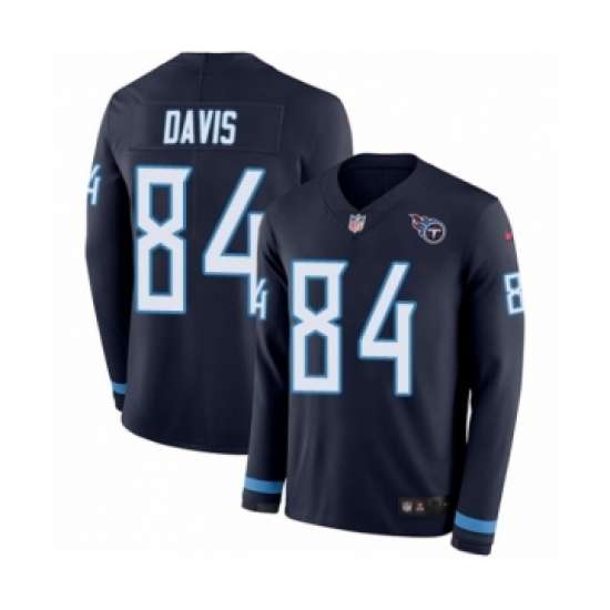 >Men's Nike Tennessee Titans #84 Corey Davis Limited Navy Blue Therma Long Sleeve NFL Jersey