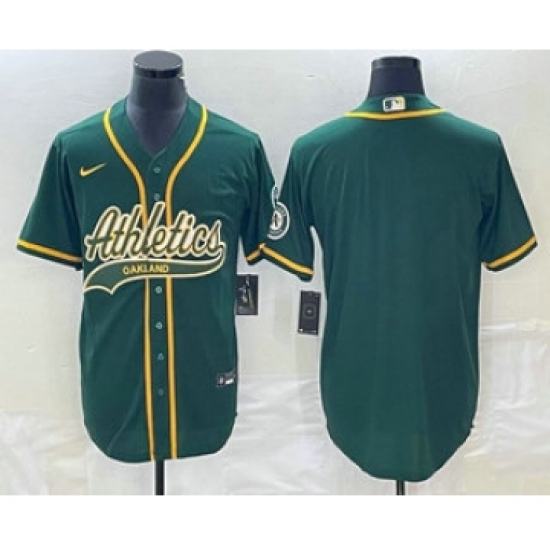 Men's Oakland Athletics Green Team Big Logo Cool Base Stitched Baseball Jersey 003