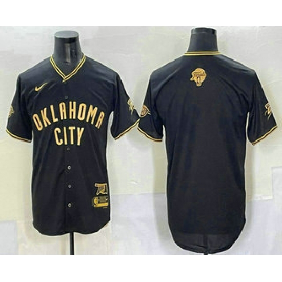 Men's Oklahoma City Thunder Blank Black Gold 2025 Finals Vapor Stitched Baseball Jersey