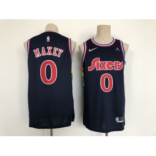 Men's Philadelphia 76ers #0 Tyrese Maxey Navy City Player Jersey