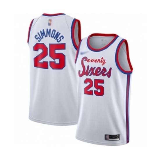 >Men's Philadelphia 76ers #25 Ben Simmons Authentic White Hardwood Classics Basketball Jersey