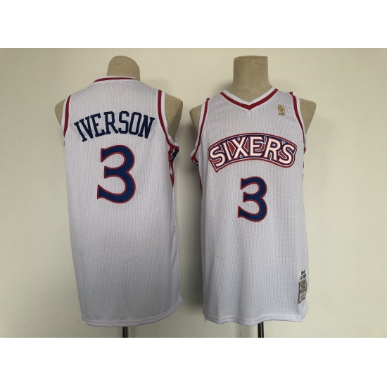 >Men's Philadelphia 76ers #3 Dana Barros White Throwback Basketbal Jersey