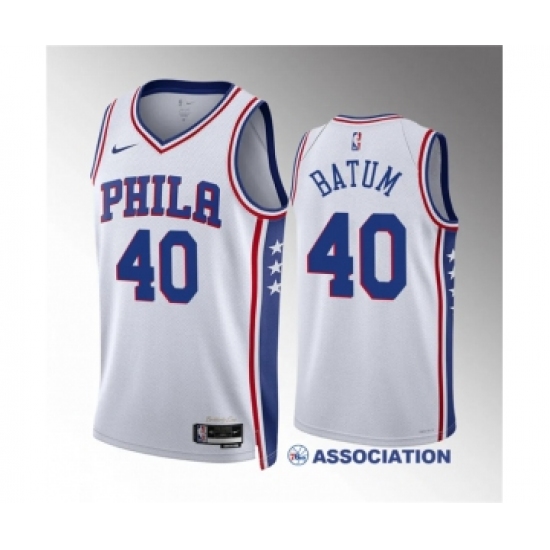 Men's Philadelphia 76ers #40 Nicolas Batum White Association Edition Stitched Jersey