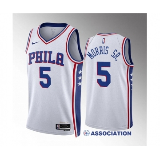 Men's Philadelphia 76ers #5 Marcus Morris Sr White Association Edition Stitched Jersey