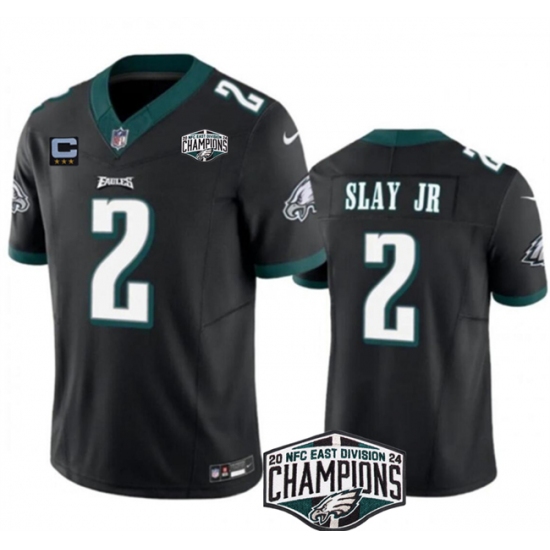 Men's Philadelphia Eagles #2 Darius Slay JR Black 2024 NFC East Champions With 3-Star C F.U.S.E. Vapor Untouchable Limited Stitched Football Jersey