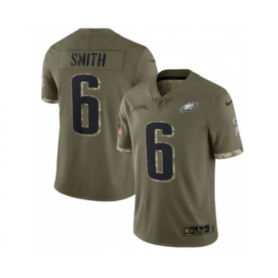 Men's Philadelphia Eagles #6 DeVonta Smith 2022 Olive Salute To Service Limited Stitched Jersey