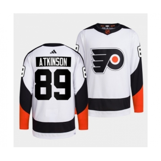 >Men's Philadelphia Flyers #89 Cam Atkinson White 2022 Reverse Retro Stitched Jersey