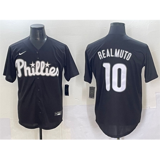 >Men's Philadelphia Phillies #10 J.T. Realmuto Black Lights Out Limited Stitched Baseball Jersey