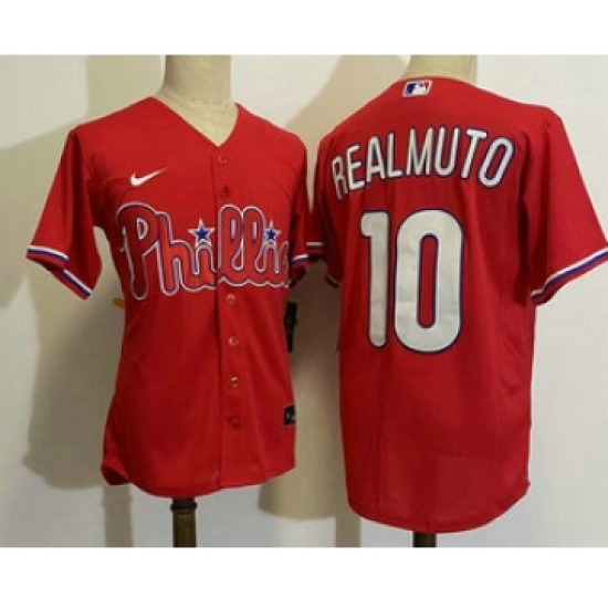 Men's Philadelphia Phillies #10 JT Realmuto Red Stitched MLB Cool Base Nike Jersey