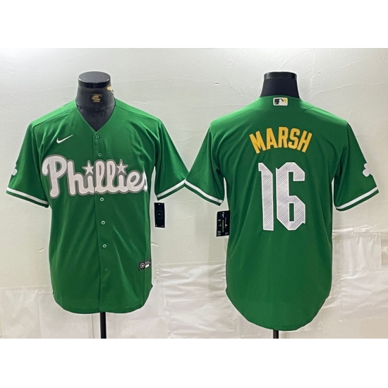 >Men's Philadelphia Phillies #16 Brandon Marsh Green 2024 City Connect Stitched Jersey