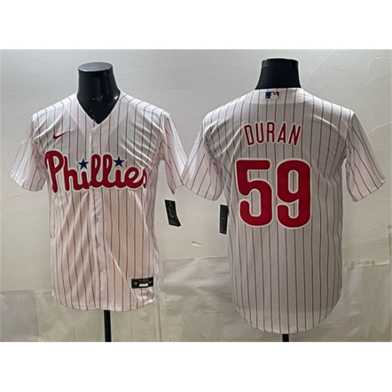 >Men's Philadelphia Phillies #59 Jhoan Durán White Cool Base Stitched Jersey