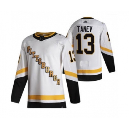 >Men's Pittsburgh Penguins #13 Brandon Tanev White 2020-21 Reverse Retro Alternate Hockey Jersey