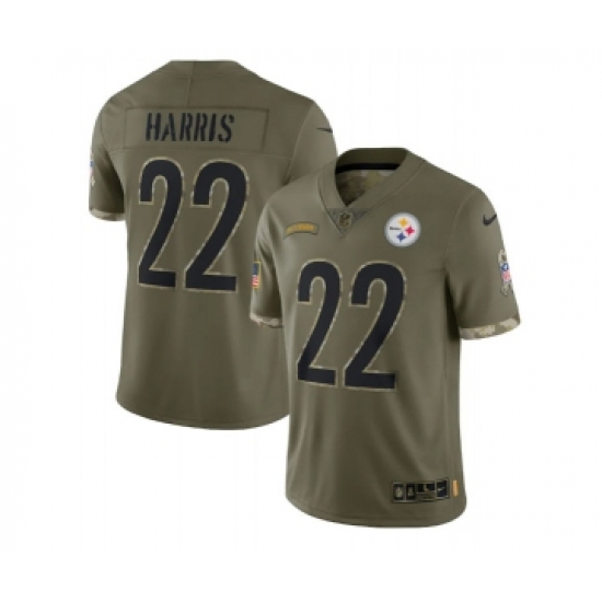 >Men's Pittsburgh Steelers #22 Najee Harris 2022 Olive Salute To Service Limited Stitched Jersey