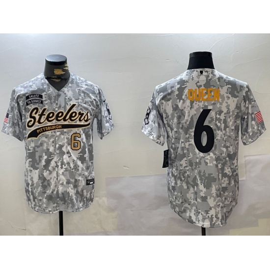 Men's Pittsburgh Steelers #6 Patrick Queen Arctic Camo 2024 Salute to Service Stitched Baseball Jerseys