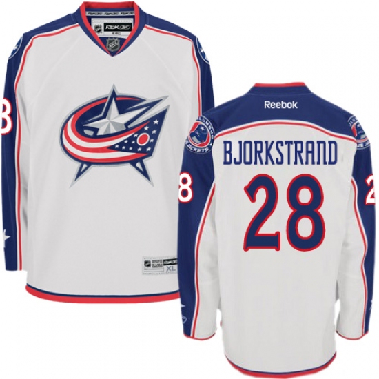 Home>NHL>Columbus Blue Jackets>Oliver Bjorkstrand>Men's Reebok Columbus Blue Jackets #28 Oliver Bjorkstrand Authentic White Away NHL Jersey