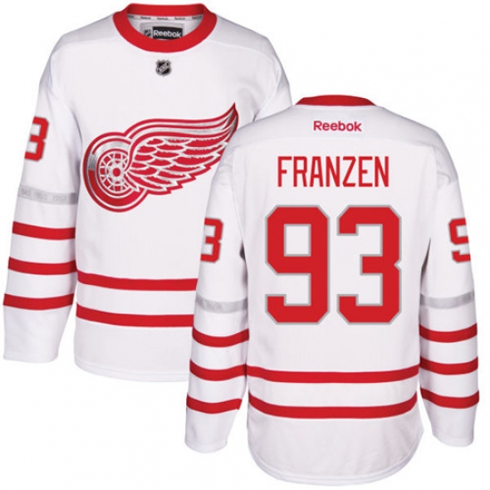 Men's Reebok Detroit Red Wings #93 Johan Franzen Premier White 2017 Centennial Classic NHL Jersey