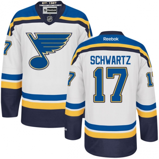 Home>NHL>St. Louis Blues>Jaden Schwartz>Men's Reebok St. Louis Blues #17 Jaden Schwartz Authentic White Away NHL Jersey