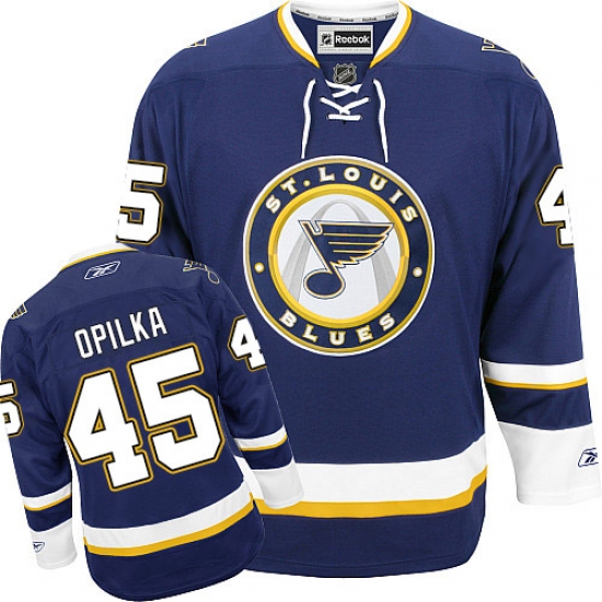 Home>NHL>St. Louis Blues>Luke Opilka>Men's Reebok St. Louis Blues #45 Luke Opilka Premier Navy Blue Third NHL Jersey