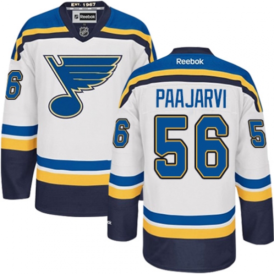 Home>NHL>St. Louis Blues>Magnus Paajarvi>Men's Reebok St. Louis Blues #56 Magnus Paajarvi Authentic White Away NHL Jersey