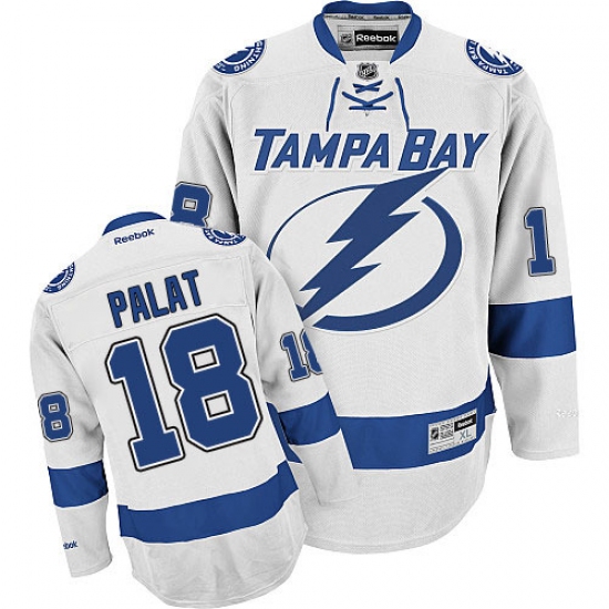 Home>NHL>Tampa Bay Lightning>Ondrej Palat>Men's Reebok Tampa Bay Lightning #18 Ondrej Palat Authentic White Away NHL Jersey