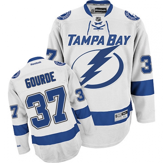 Home>NHL>Tampa Bay Lightning>Yanni Gourde>Men's Reebok Tampa Bay Lightning #37 Yanni Gourde Authentic White Away NHL Jersey