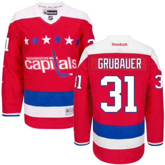 Home>NHL>Washington Capitals>Philipp Grubauer>Men's Reebok Washington Capitals #31 Philipp Grubauer Premier Red Third NHL Jersey