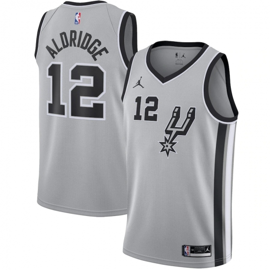 >Men's San Antonio Spurs #12 LaMarcus Aldridge Jordan Brand Silver 2020-21 Swingman Jersey