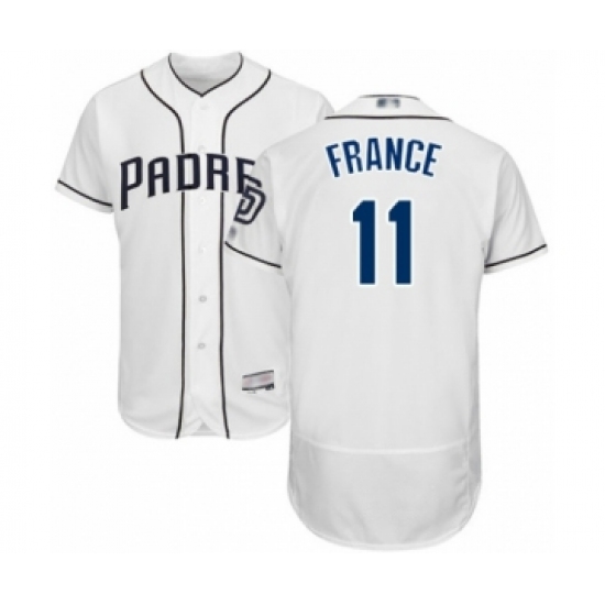 Men's San Diego Padres #11 Ty France White Home Flex Base Authentic Collection Baseball Player Jersey