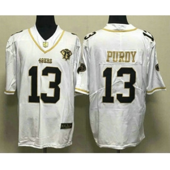 Men's San Francisco 49ers #13 Brock Purdy White Gold With 75th Anniversary Stitched Jersey
