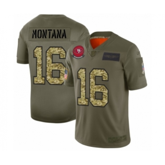 >Men's San Francisco 49ers #16 Joe Montana 2019 Olive Camo Salute to Service Limited Jersey