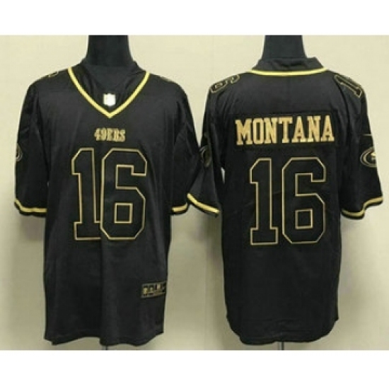 Men's San Francisco 49ers #16 Joe Montana Black Gold Stitched Jersey