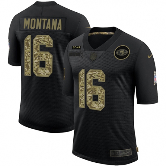 >Men's San Francisco 49ers #16 Joe Montana Camo 2020 Salute To Service Limited Jersey
