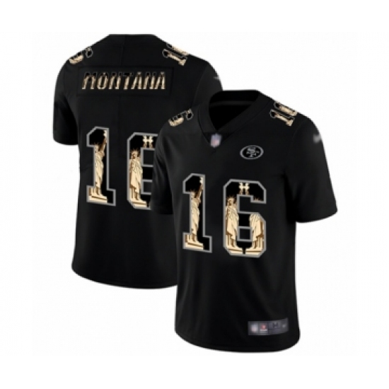 Men's San Francisco 49ers #16 Joe Montana Limited Black Statue of Liberty Football Jersey