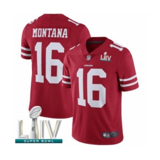 Men's San Francisco 49ers #16 Joe Montana Red Team Color Vapor Untouchable Limited Player Super Bowl LIV Bound Football Jersey