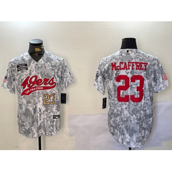 >Men's San Francisco 49ers #23 Christian McCaffrey Arctic Camo 2024 Salute to Service Stitched Baseball Jerseys