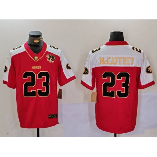 Men's San Francisco 49ers #23 Christian McCaffrey Red White Split Vapor Limited Stitched Jersey