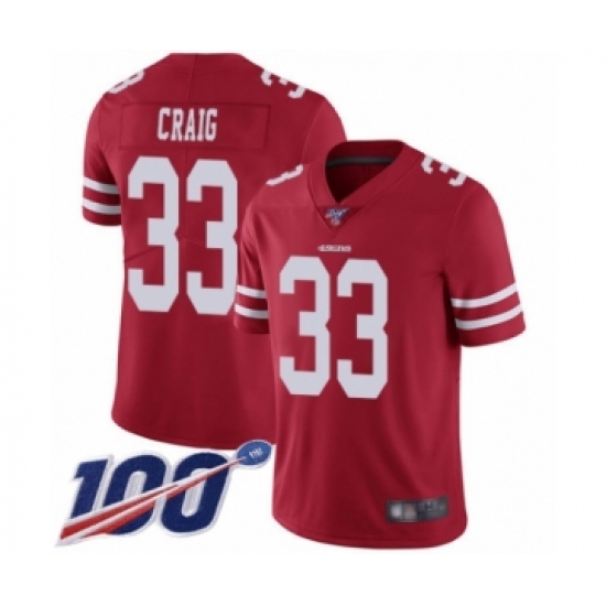 Men's San Francisco 49ers #33 Roger Craig Red Team Color Vapor Untouchable Limited Player 100th Season Football Jersey