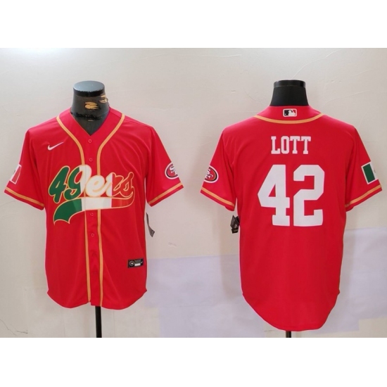 Men's San Francisco 49ers #42 Ronnie Lott Red With Cool Base Stitched Baseball Jerseys