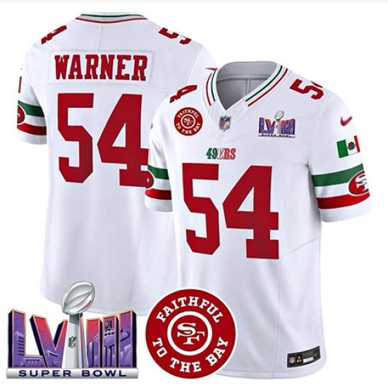 Women's San Francisco 49ers #54 Fred Warner White 2023 F U S E Vapor Untouchable Limited Stitched Football 2024 Super Bowl LVIII Jersey