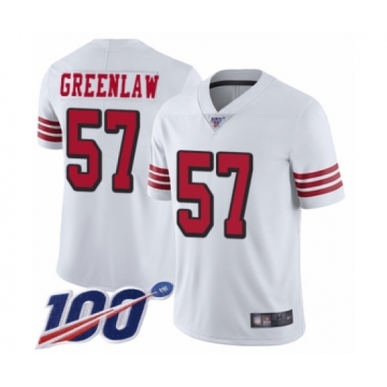 Men's San Francisco 49ers #57 Dre Greenlaw Limited White Rush Vapor Untouchable 100th Season Football Jersey