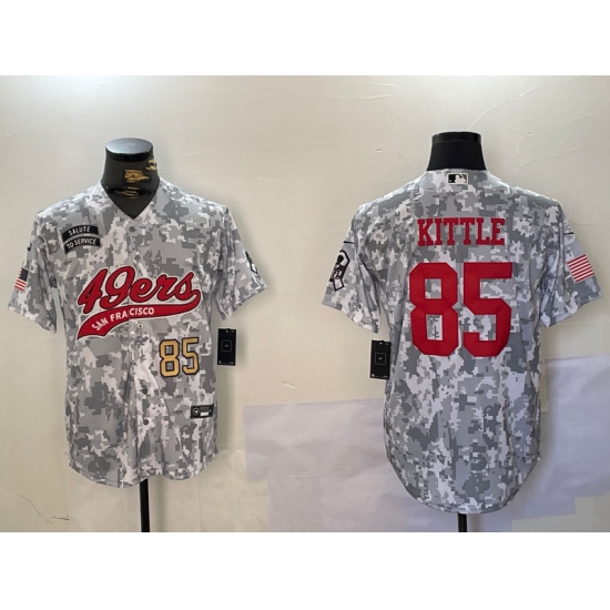 >Men's San Francisco 49ers #85 George Kittle Arctic Camo 2024 Salute to Service Stitched Baseball Jerseys