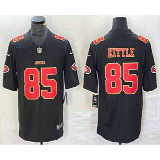>Men's San Francisco 49ers #85 George Kittle Black Red Fashion Vapor Limited Stitched Jersey