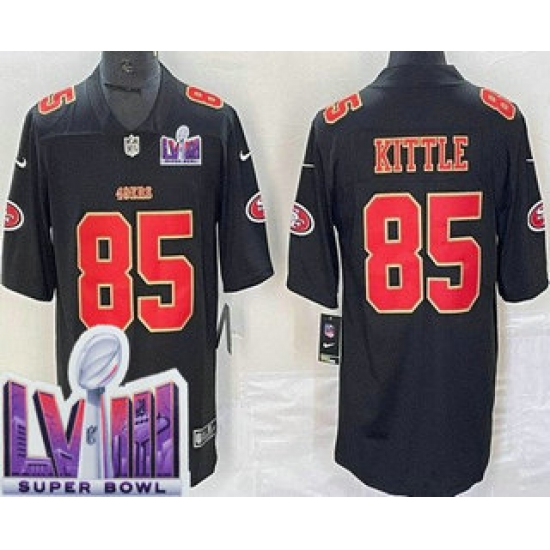 Men's San Francisco 49ers #85 George Kittle Limited Black Fashion LVIII Super Bowl Vapor Jersey