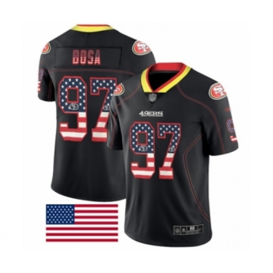 Men's San Francisco 49ers #97 Nick Bosa Limited Black Rush USA Flag Football Jersey